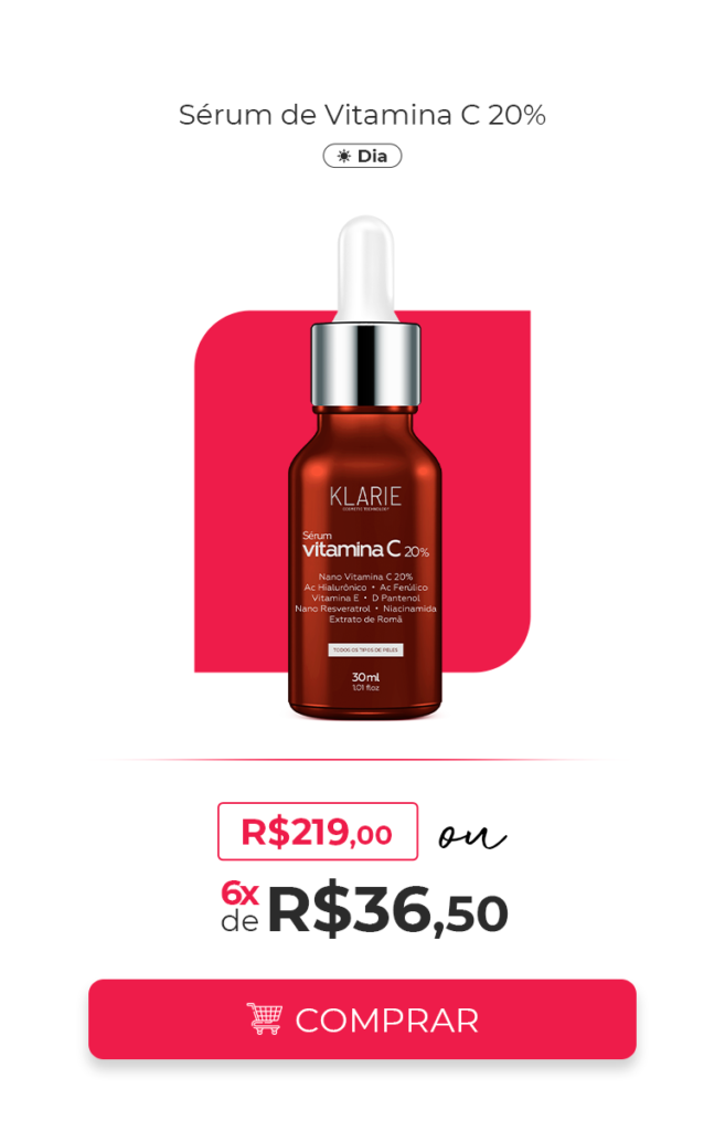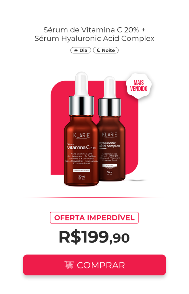 Nosso compromisso com a qualidade já foi reconhecido no mercado: nossa Vitamina C 20% é uma das melhores disponíveis e foi finalista no Prêmio Atualidade Cosmética 2021, destacando-se como referência em inovação e eficácia. Klarie é tecnologia, ciência e cuidado – tudo para transformar sua pele e sua experiência com a beleza.